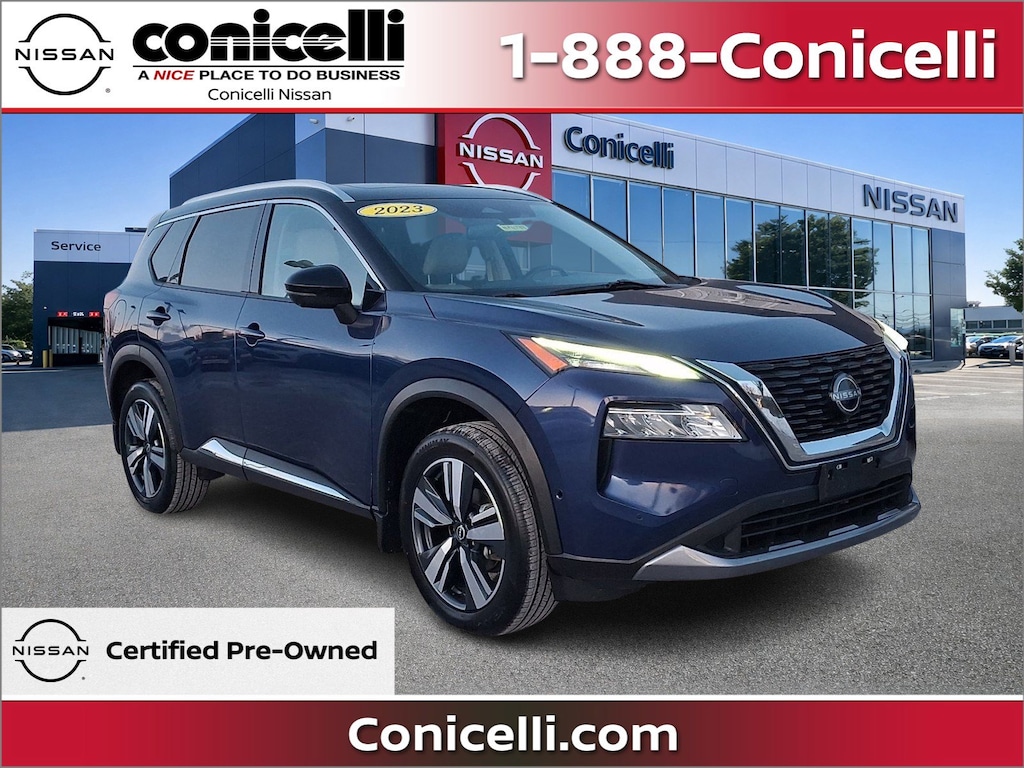 AWD, CarFax One Owner! This Nissan Rogue is CERTIFIED! Back-up Camera, Bluetooth, This 2023 Nissan Rogue SL, has a great Caspian Blue Metallic/Super Black exterior, and a clean Light Gray interior! Heated Seats, Multi-Zone Air Conditioning, Auto Climate Control, Leather Steering Wheel Satellite Radio, Steering Wheel Controls, Sunroof/Moonroof, Aux Audio Input, Seating, Automatic Headlights Keyless Start Parking Sensors AM/FM Radio Rear Spoiler, Premium Sound System This Nissan Rogue gets great fuel economy with over 34.0 MPG on the highway! Park Distance Control Turbocharged, Stability Control, ABS Brakes Satellite Radio Power Lift Gate Call to confirm availability and schedule a no-obligation test drive! We are located at 1222 Ridge Pike, Conshohocken, PA 19428.