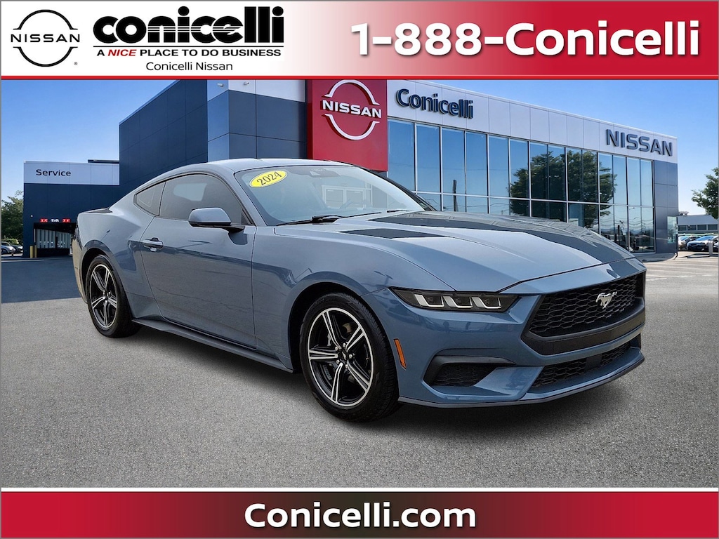 -Priced below the market average!- Back-up Camera, Bluetooth, This 2024 Ford Mustang EcoBoost, has a great Vapor Blue Metallic exterior, and a clean Black Onyx interior! Auto Climate Control, Steering Wheel Controls, Aux Audio Input, Automatic Headlights Keyless Start Parking Sensors AM/FM Radio Rain Sensing Wipers This Ford Mustang gets great fuel economy with over 33.0 MPG on the highway! Park Distance Control Turbocharged, Stability Control, ABS Brakes Call to confirm availability and schedule a no-obligation test drive! We are located at 1222 Ridge Pike, Conshohocken, PA 19428.